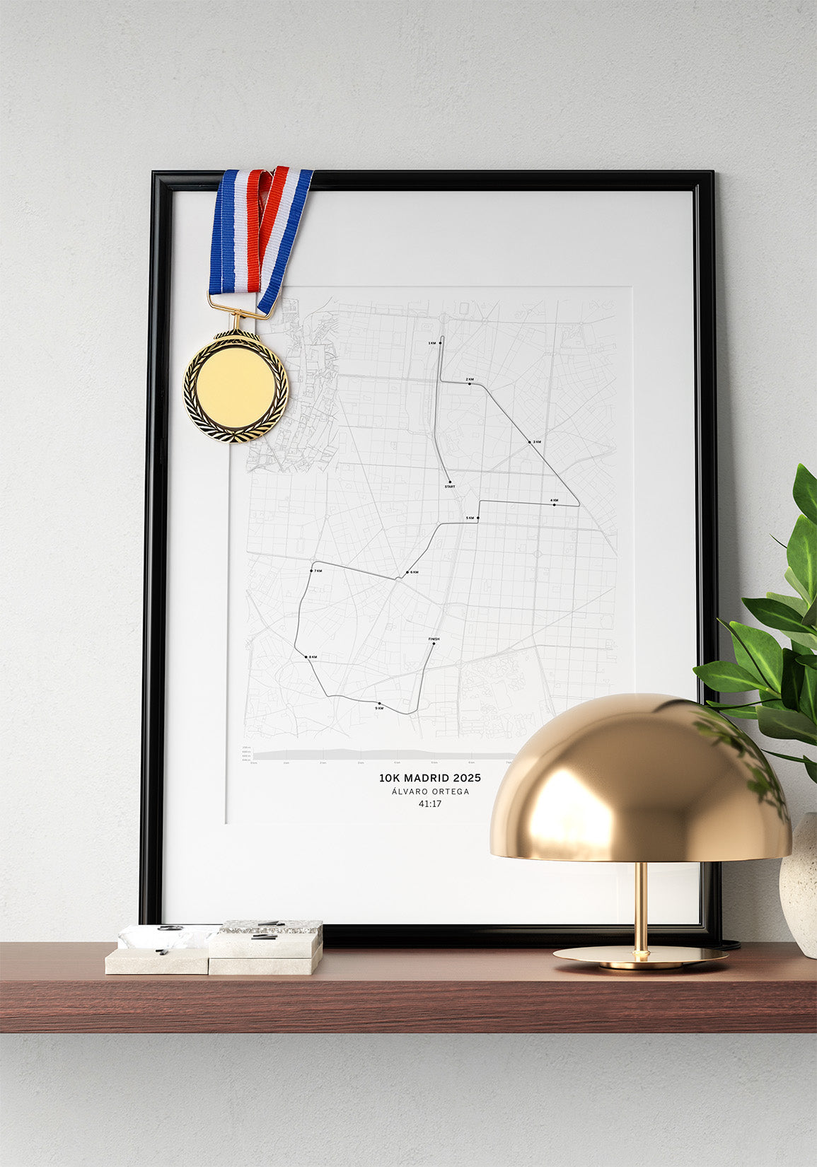 Celebra tu logro en el 10K Zurich Rock ‘n’ Roll Madrid 2025 con un mapa laminame personalizado. Añade tu nombre y tiempo, y guarda este recuerdo único para siempre.