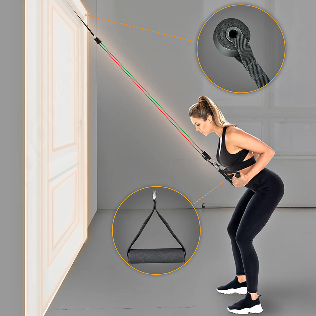 Con este Set de 12 piezas de la marca española Gridinlux podrás practicar ejercicio en el lugar que desees. Estas bandas de resistencia son perfectas para cualquier tipo de ejercicio: fitness, yoga, pilates, musculación… cada banda elástica es de una resistencia diferentes para adecuar el entrenamiento al nivel que necesites. Muy recomendables también para ejercicios de rehabilitación y estiramiento. SET DE RESISTENCIA COMPLETO: Incluye 5 tipos de bandas, 2 agarres acolchados Premium, 2 correas ajustables, 1 accesorio para poder utilizarlas en puertas y una bolsa de transporte, para que puedas llevarlas a cualquier lado donde desees realizar tus ejercicios siempre con la máxima comodidad. 5 NIVELES DE ENTRENAMIENTO: Cada banda posee una resistencia diferente, ofreciéndote 5 niveles que van desde los 10lb (4,5kg) de resistencia, hasta los 30lb (13,6kg) de resistencia. Para que, realices el entrenamiento que realices, puedas desarrollar tus ejercicios y crecer en tus metas. SET MULTIFUNCIONAL: Gracias a sus diferentes niveles de resistencia y a sus accesorios incluidos, podrás utilizar las bandas para realizar todo tipo de ejercicios: Pilates, yoga, fitness, musculación, estiramientos, elasticidad... en cualquier lugar: casa, oficina, gimnasio o al aire libre. MÁXIMA POTENCIA DE ENTRENAMIENTOS: Realiza ejercicios para fortalecer todo el tren superior de tu cuerpo. Utiliza el accesorio especial para puertas y entrena los músculos de brazos, espalda y abdomen sin necesidad de salir de casa y siempre con la máxima comodidad y garantías. EFICACIA 100% EN RESULTADOS: Ejercita también todos los músculos de tus piernas y glúteos ayudándote de las correas que podrás colocar en tus tobillos, y benefíciate de ejercicios con resultados 100% garantizados gracias a los diferentes niveles de resistencia que puedes combinar. MANUAL COMPLETO: Además, cuentas con un manual de entrenamiento que te guiará para saber qué tipo de ejercicios puedes realizar gracias a este Set. Y si tienes alguna duda en algún momento, podrás ponerte en contacto con nosotros para asesorarte en lo que necesites.