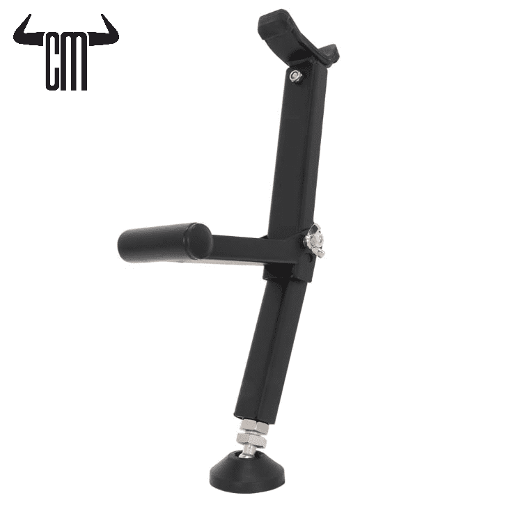 - Posicionar el caballete con el pie en el suelo y el soporte apuntando al eje trasero.