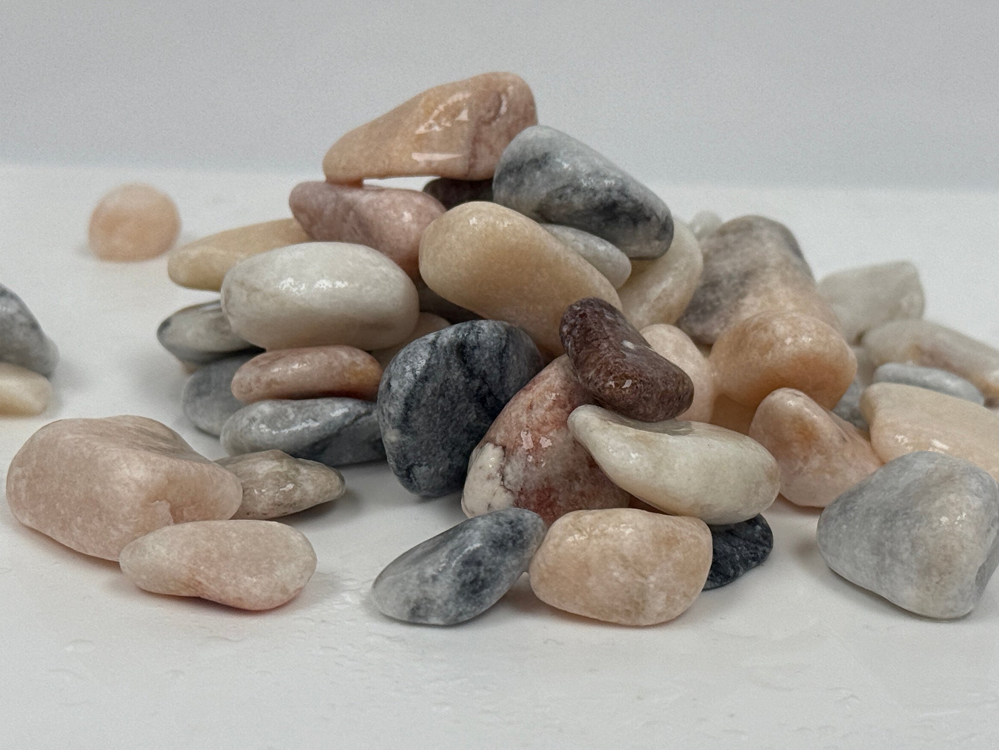 El Canto Rodado Capri no es solo una piedra, es una verdadera obra de arte natural que aporta color y alegría a tu jardín, mientras mantiene la pureza y naturalidad de sus componentes. Su combinación de tonos suaves de blanco, rosa y gris le da un aire elegante y vibrante, creando un ambiente acogedor y lleno de vida.