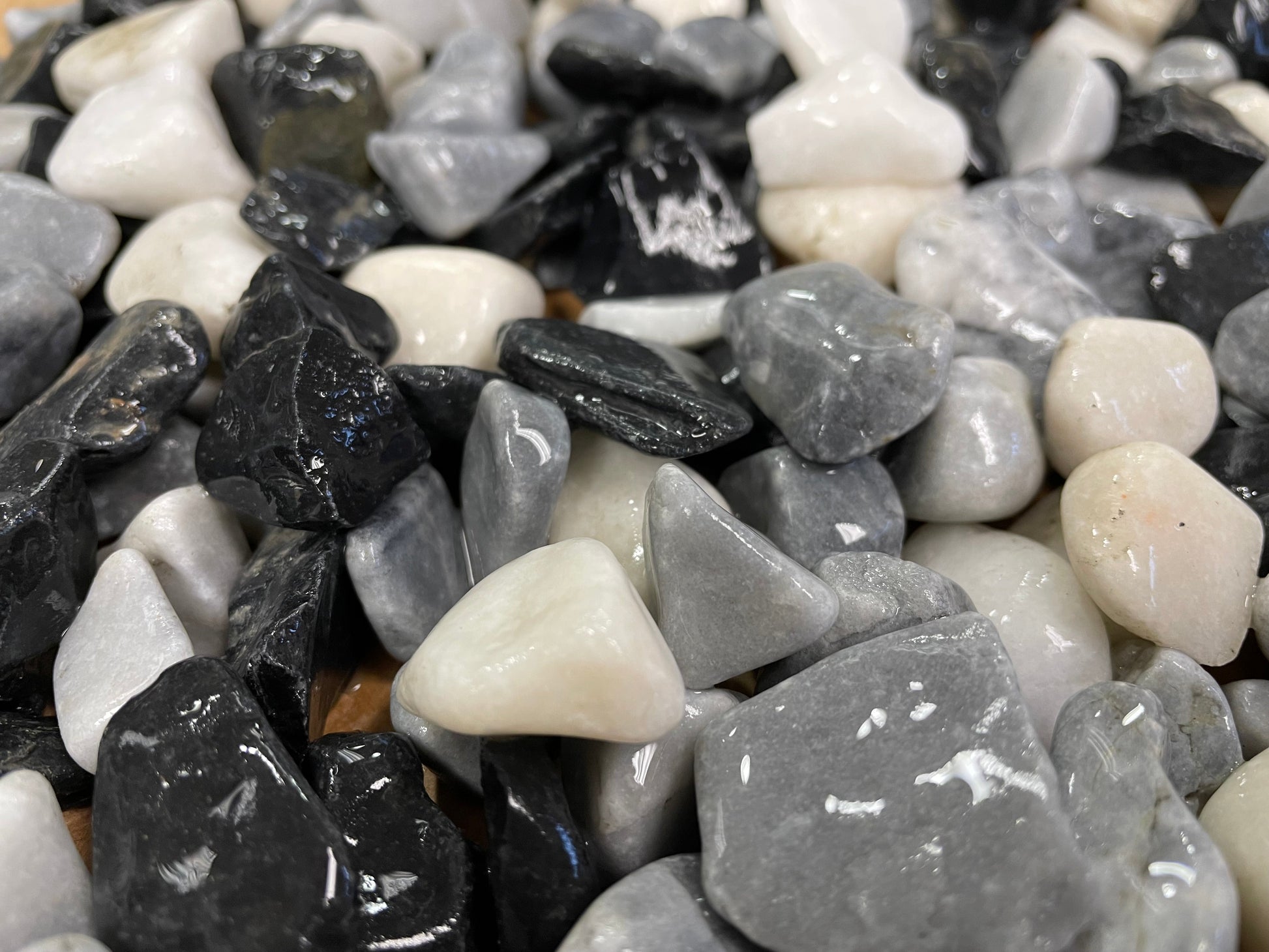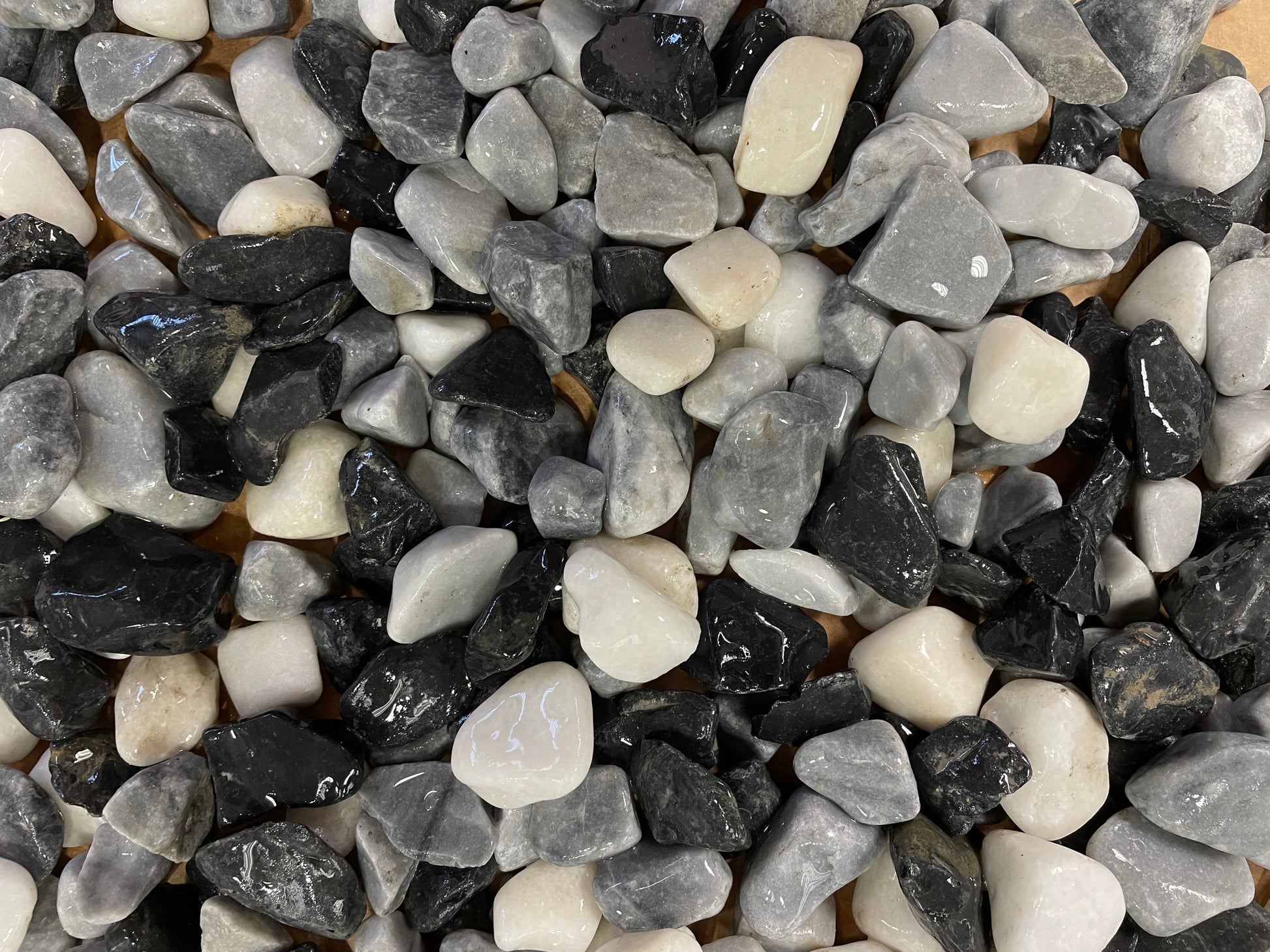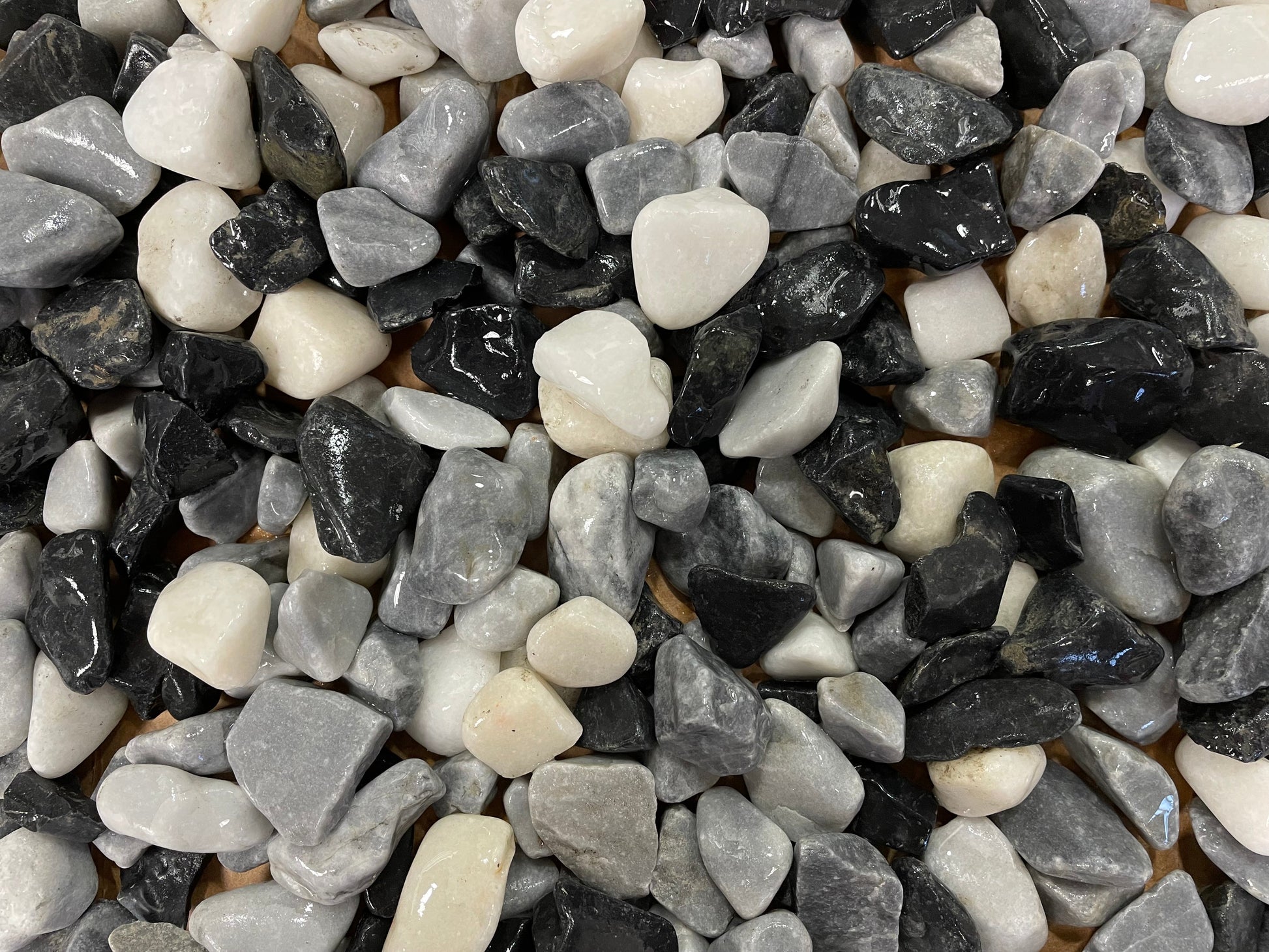 Descubre el Canto Rodado Exclusivo de Vetonek, la opción perfecta para diseñar un jardín original y atractivo. Este producto destaca por su mezcla de colores únicos que incluye Canto Rodado Blanco Premium, Negro Grafito y Gris Azulado.