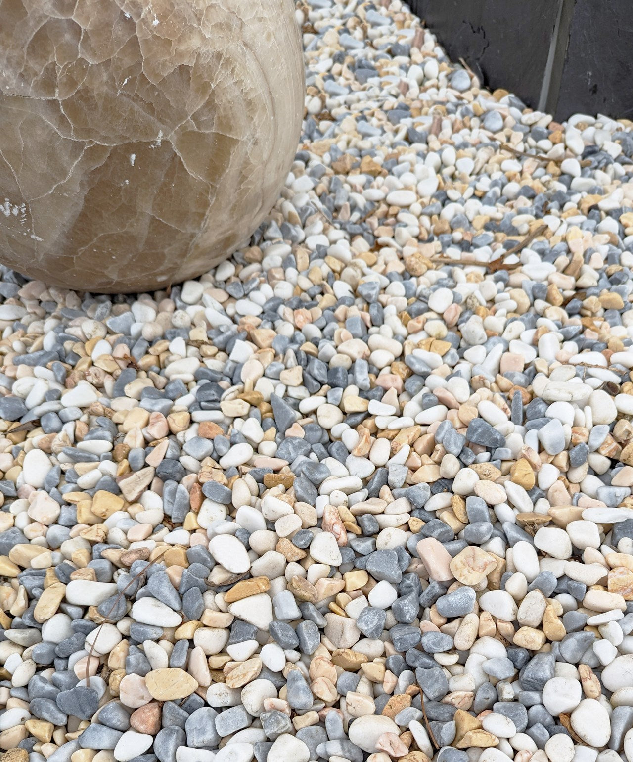 La colocación de la piedra es fácil: simplemente limpie la zona que desea decorar y extienda la grava de forma uniforme. ¡Transforme su espacio exterior con nuestro exclusivo canto rodado Hawai!