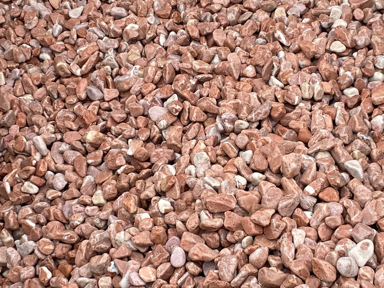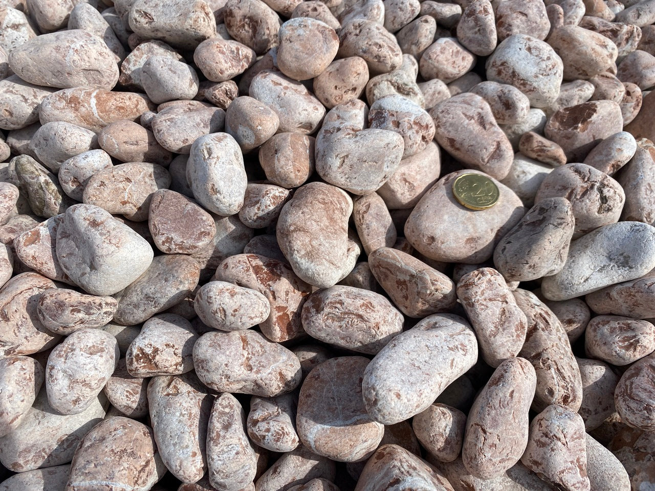 Canto rodado de mármol rojo: una piedra roja con vetas blancas ideal para embellecer tu espacio exterior. Este canto rodado combina a la perfección tanto con jardines modernos como con proyectos más clásicos y rústicos.