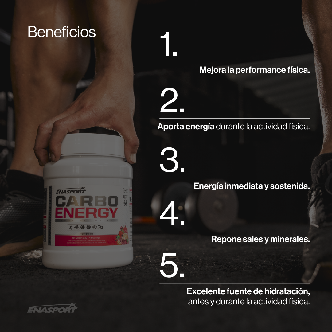 Carbo Energy es una bebida deportiva diseñada para acompañarte en entrenamientos intensos y actividades de resistencia, proporcionando energía inmediata y sostenida cuando más la necesitas. Su fórmula exclusiva combina carbohidratos simples, que actúan como fuente rápida de energía, y carbohidratos complejos, que mantienen un nivel energético elevado durante más tiempo.