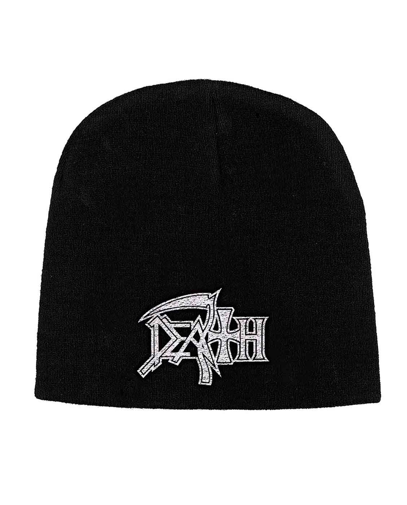 Gorro Beanie negro 100% oficial de Death que presenta el diseño "Logo" en la parte delantera.