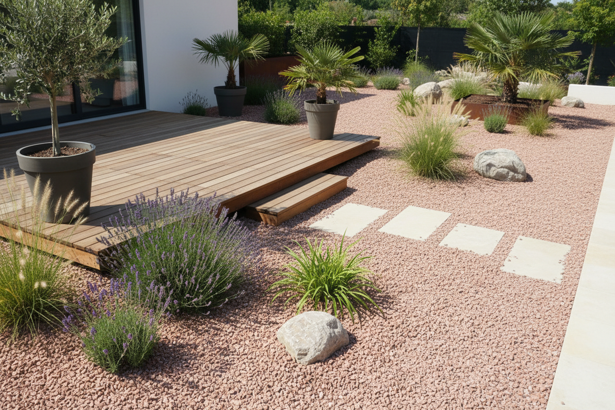 La Grava Roja Mármol es increíblemente versátil, disponible en una amplia gama de tamaños. Desde los pequeños 3-6 mm, ideales para jardines japoneses o para mezclar con resinas en caminos y patios, hasta los robustos 30-40 mm, perfectos para áreas donde se busca un impacto visual más fuerte y para entornos con mascotas, como perros, que no podrán desplazar estas piedras de mayor tamaño.