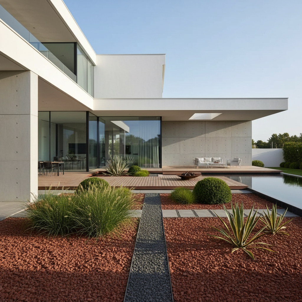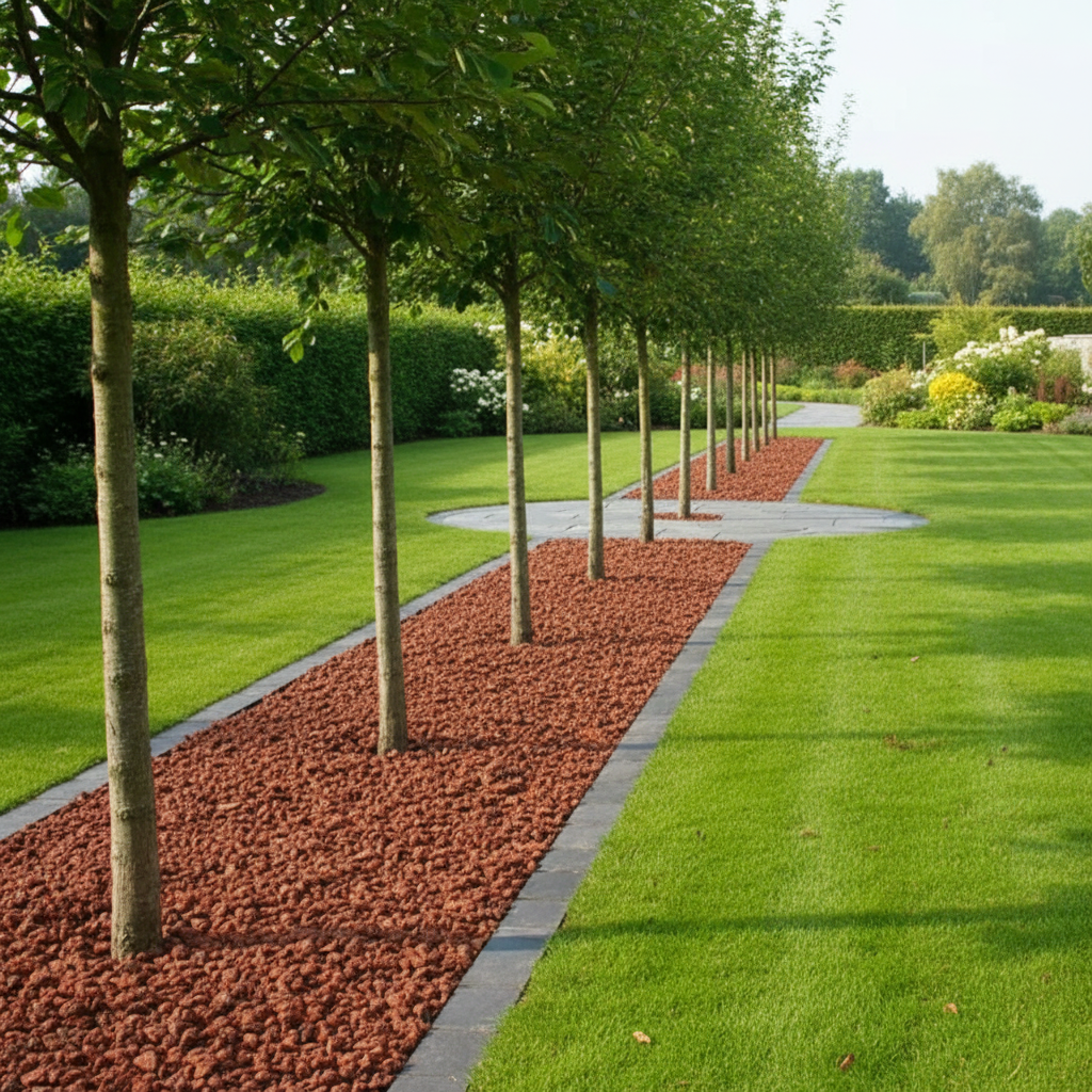 Colocación de Grava Volcánica para jardín Roja/Granate