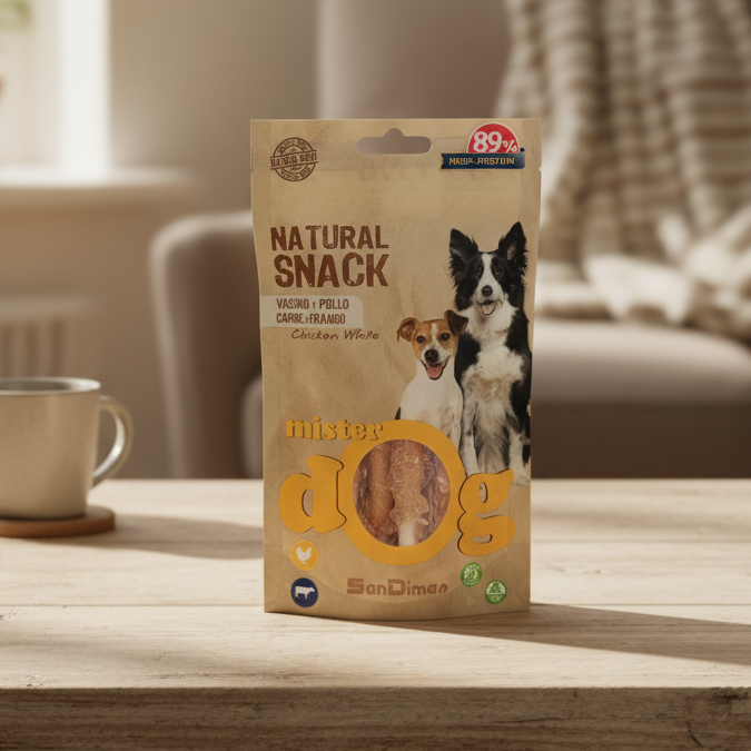 Sorprende a tu peludo con este sabroso snack elaborado con una irresistible combinación de pollo y vacuno. Las tiras suaves y jugosas de carne natural son perfectas como premio diario o recompensa saludable.