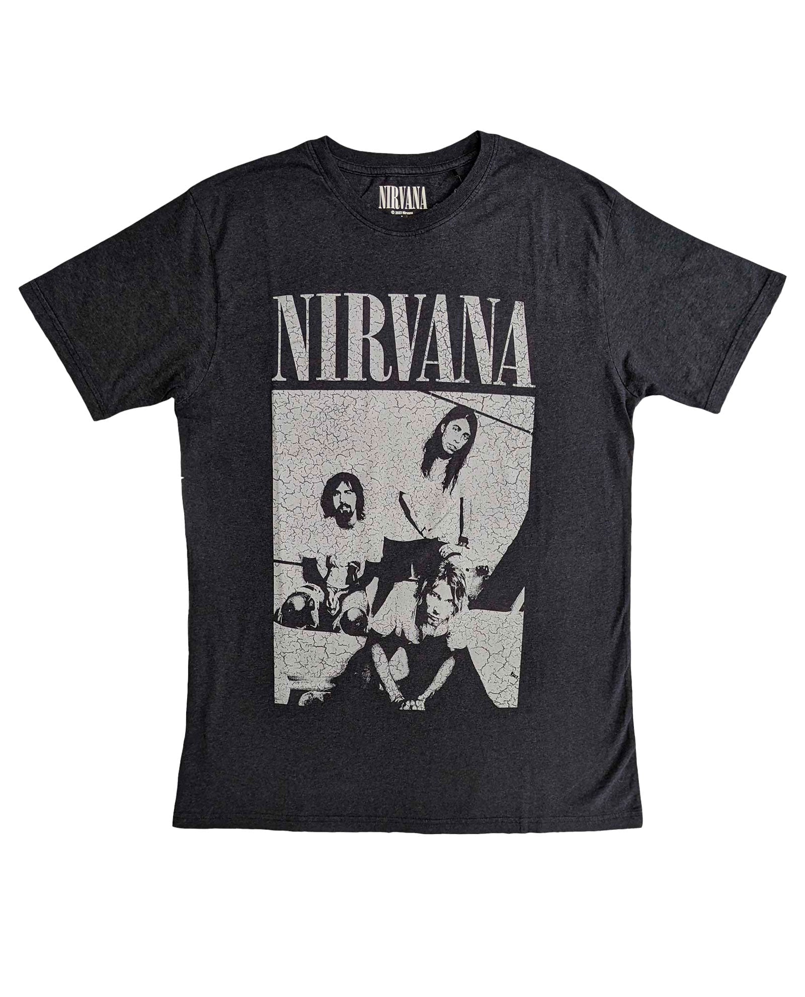 Camiseta de manga corta, cuello redondo y corte unisex. Merchandising 100% oficial de Nirvana que presenta el diseño "Sitting" en la parte delantera. Esta camiseta de alta calidad está disponible en color negro.