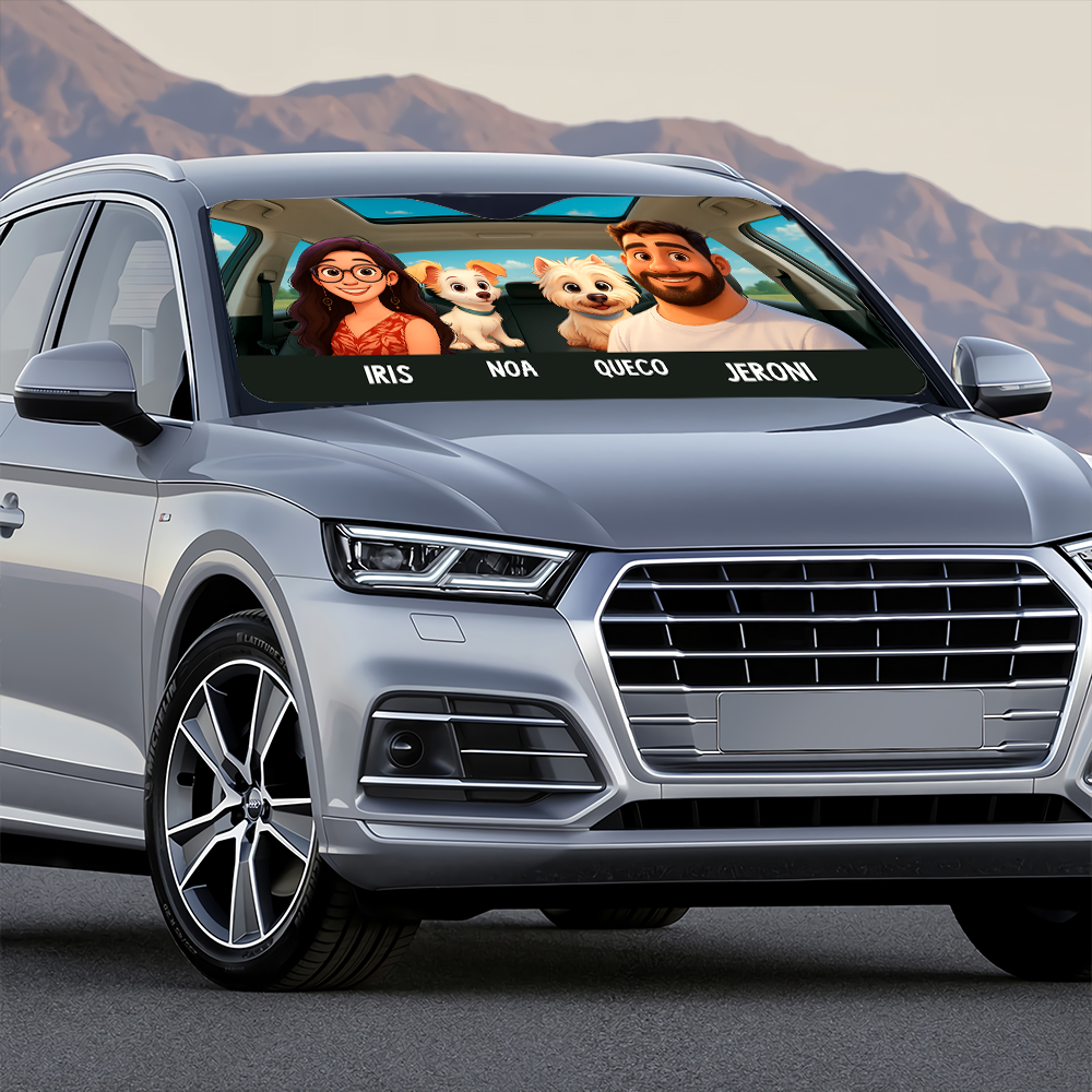 Este parasol único convierte tu coche en una escena divertida y entrañable, mostrando a tu familia y mascotas en versión dibujo animado 🥰.