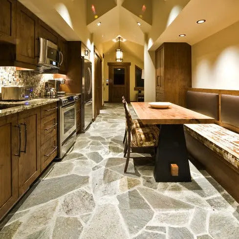 Se trata de una cuarcita de gran resistencia y belleza, puedes utilizarlo para pavimentos, para la creación de caminos y senderos, colocados sobre arena o sujetos con mortero.