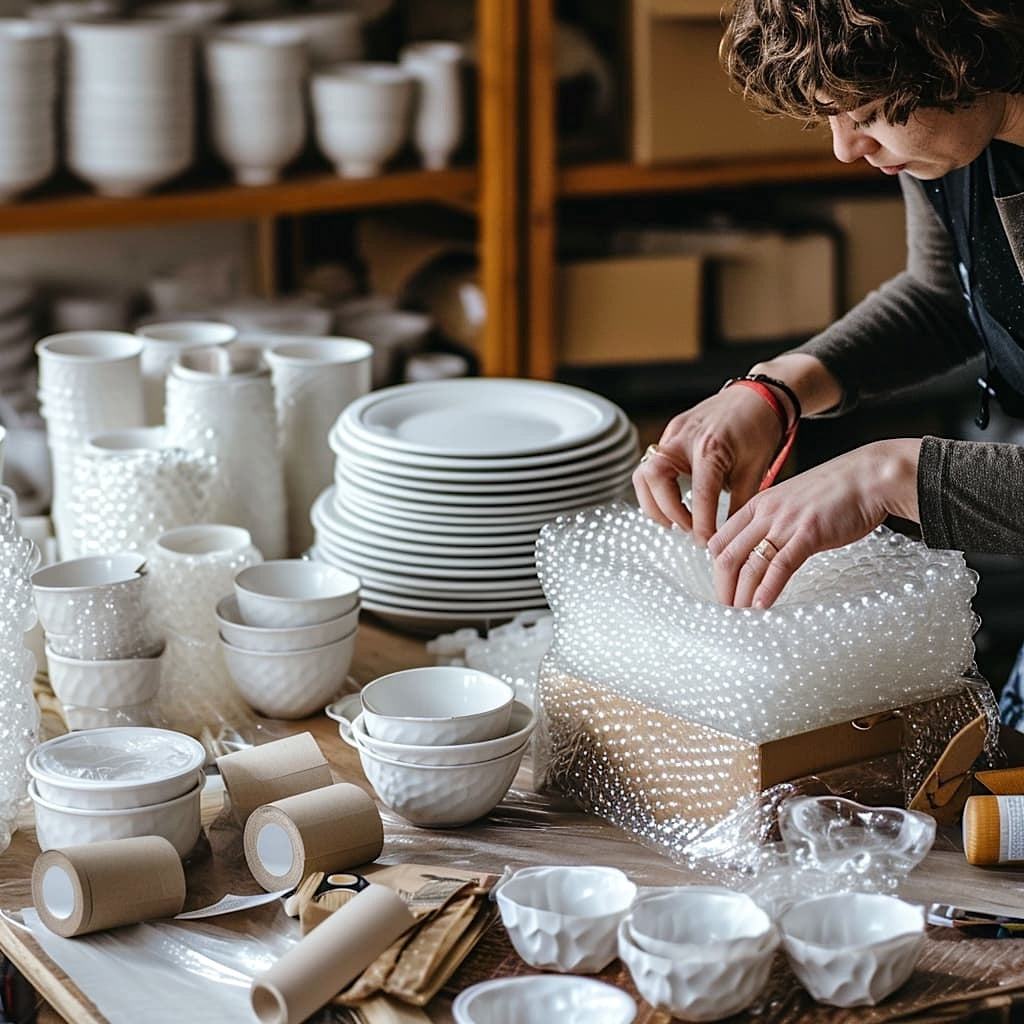 Plástico de burbujas para proteger cristalería y vajilla en envíos de productos frágiles