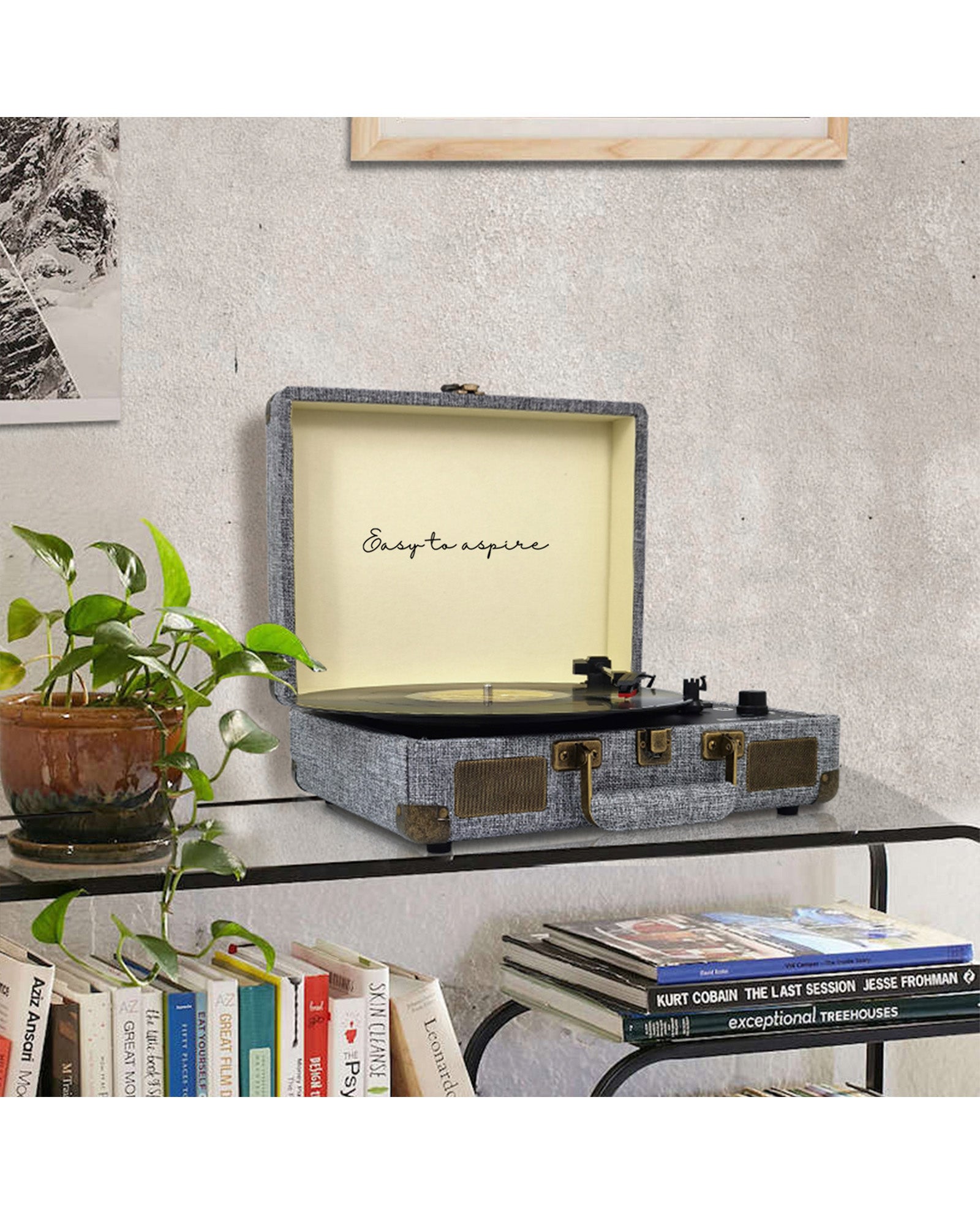 Reproductor de vinilos y de música a través de bluetooth, USB, TF y Radio FM. Digitaliza vinilos a formato WAV mediante la entrada USB y la ranura TF. Posee salida de audio RCA y auriculares. Incluye una aguja de lápiz de rubí para reproducir los discos con delicadeza. Diseñado con forma de maletín. Vincula un teléfono móvil con el bluetooth y utiliza la función altavoz.