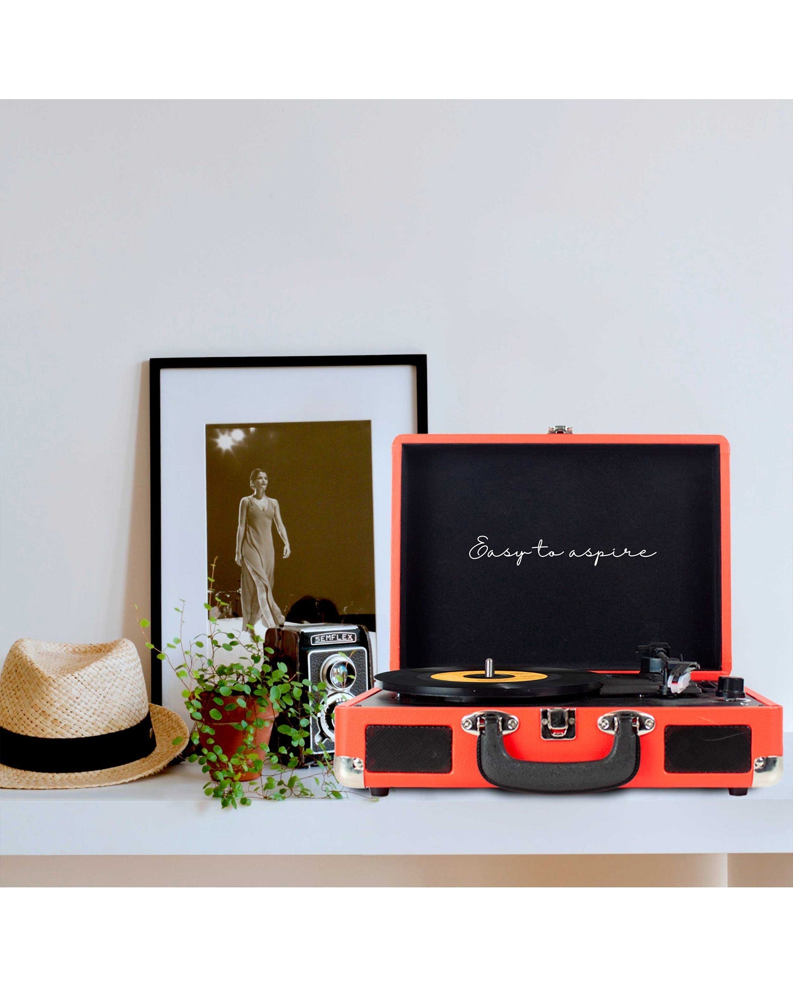 Reproductor de vinilos y de música a través de bluetooth, USB, TF y Radio FM. Digitaliza vinilos a formato WAV mediante la entrada USB y la ranura TF. Posee salida de audio RCA y auriculares. Incluye una aguja de lápiz de rubí para reproducir los discos con delicadeza. Diseñado con forma de maletín. Vincula un teléfono móvil con el bluetooth y utiliza la función altavoz.
