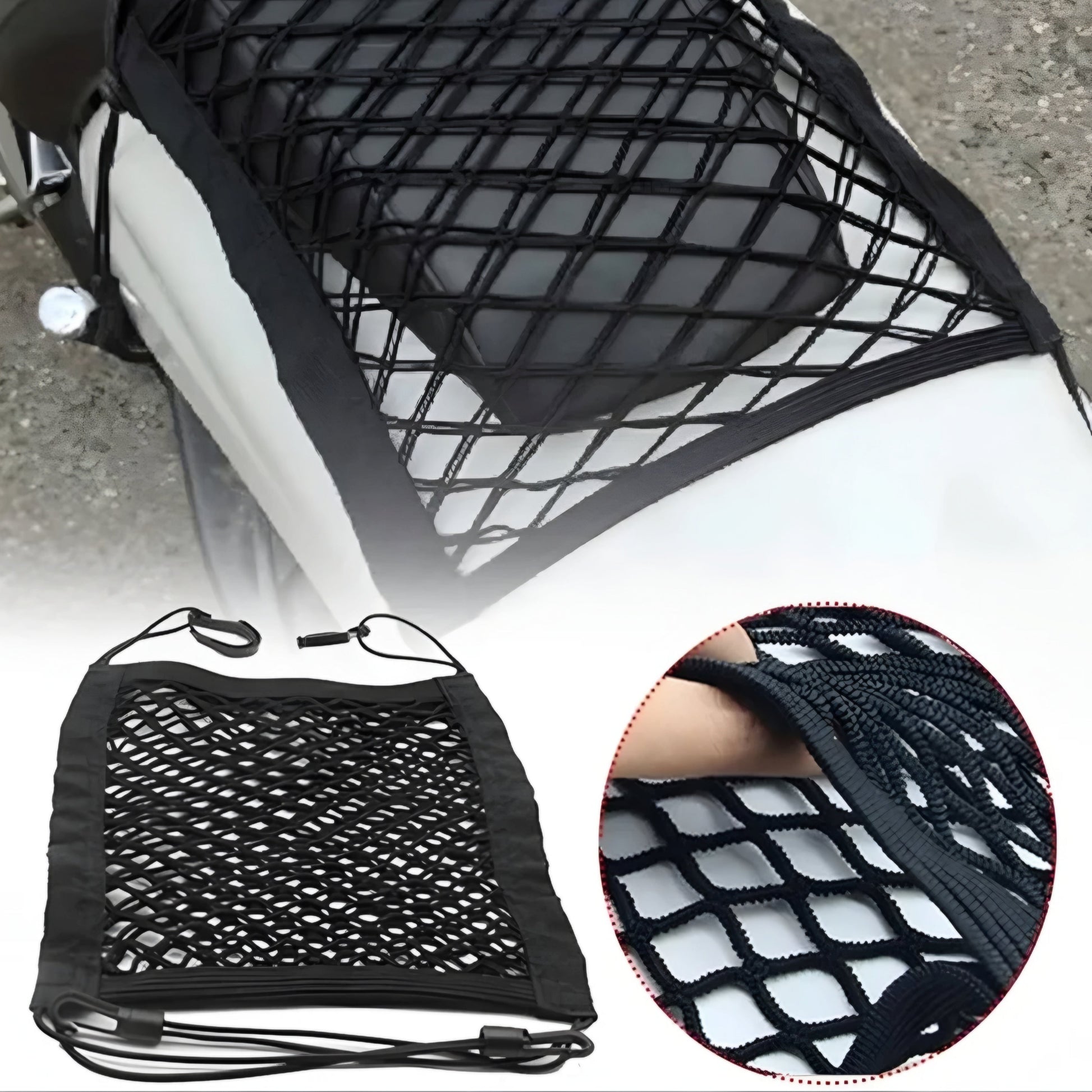 Su diseño flexible permite una sujeción adaptable a diferentes tamaños y formas de carga, convirtiéndolo en un pulpo para moto versátil y fiable.