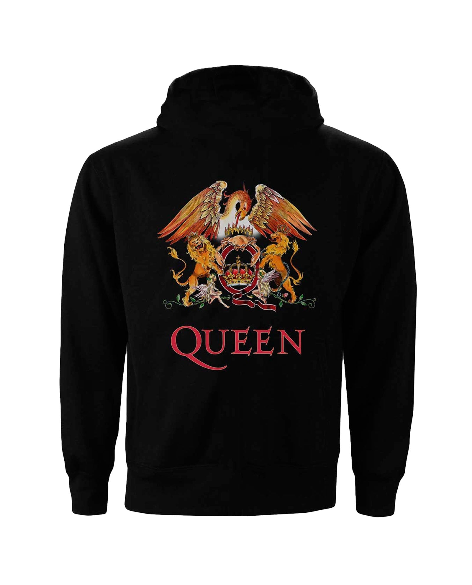 Sudadera cremallera con capucha 100% oficial de Queen que presenta el diseño "Classic Crest" en la parte delantera y trasera. Esta sudadera de alta calidad está disponible en color negro.