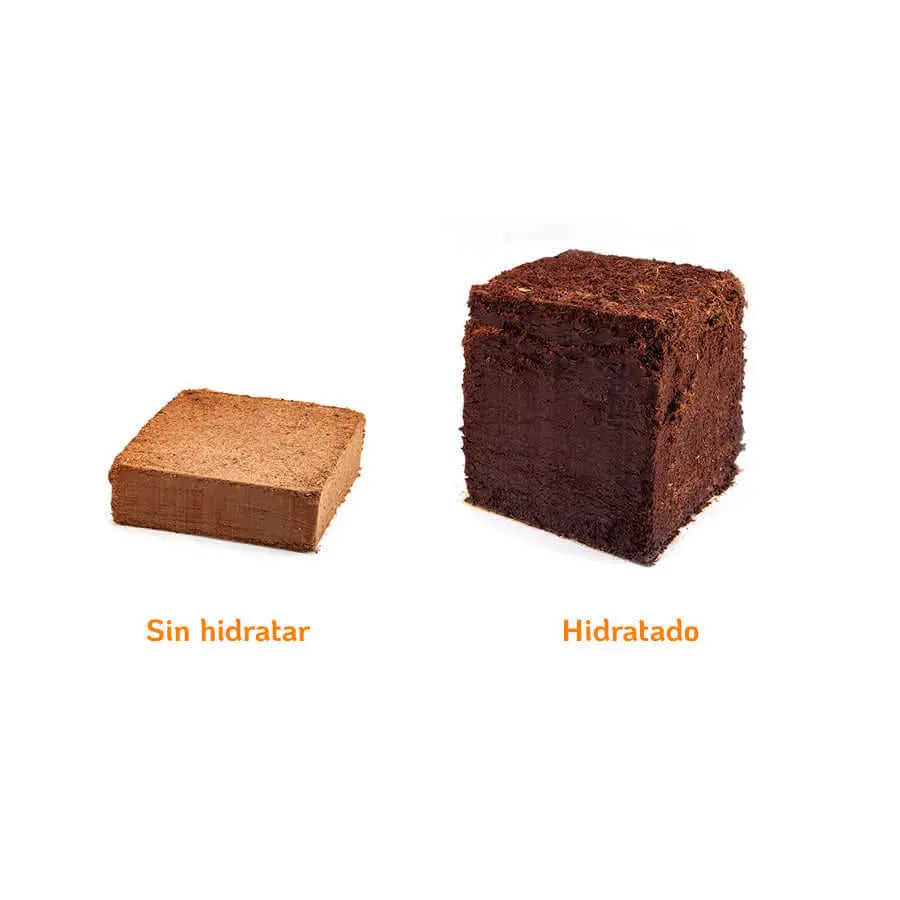 Fácil Transporte y Almacenamiento: Los bloques y briquetas deshidratados son compactos y ligeros, lo que facilita su transporte y almacenamiento. Se expanden al añadirles agua, lo que los convierte en un sustrato listo para usar.