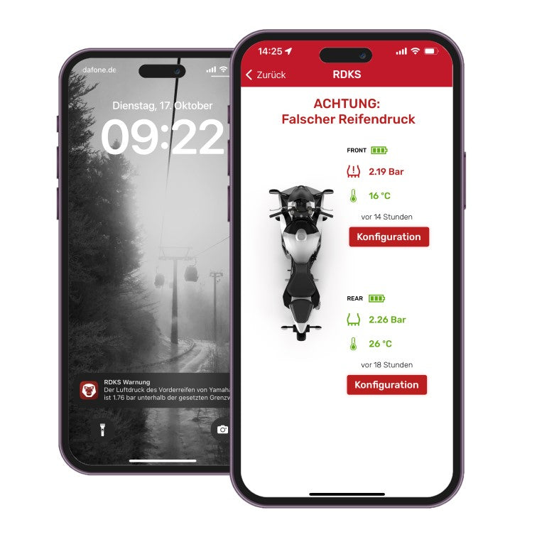 - Poder recibir alertas en tu móvil cuando la presión de alguno de tus neumáticos baje del valor que configures.