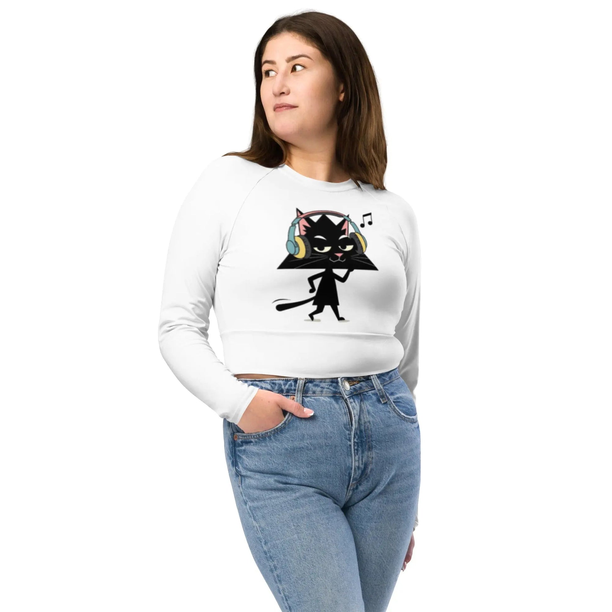 Este crop top gato Trixel Music combina tu amor por los felinos, la música y el cuidado del planeta. Su diseño único musical y manga larga lo hace perfecto para crear looks trendy únicos.