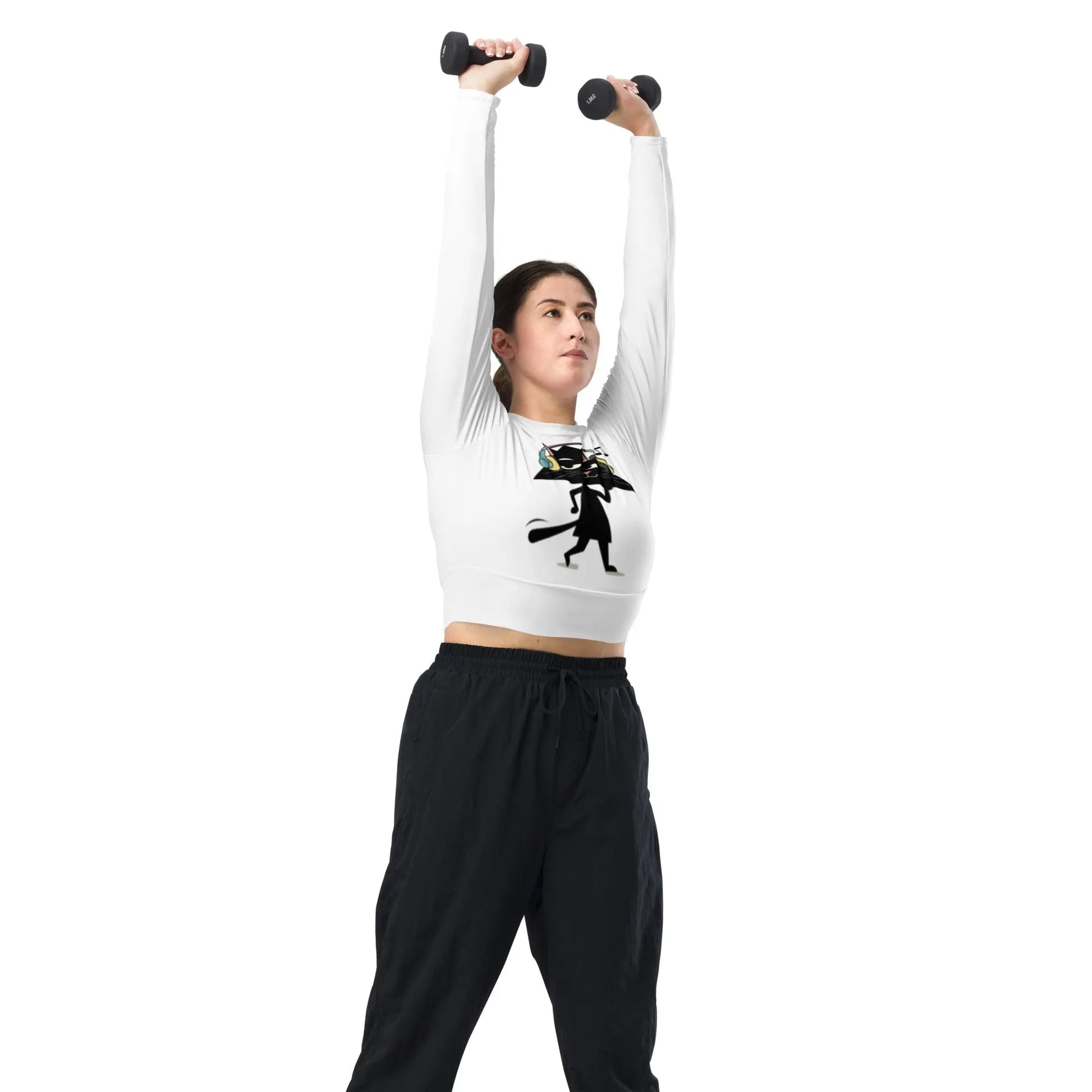 The Gato Music Long Sleeve Crop Top is crafted from Trixel Recycled EME, which is an innovative, eco-friendly fabric. This means it's made from recycled materials, allowing you to wear stylish clothing without harming the environment. It's soft, breathable, and comfortable, making it an excellent choice for daily wear. Because it combines style and sustainability, this crop top is perfect for anyone looking to make a fashion statement while being responsible.